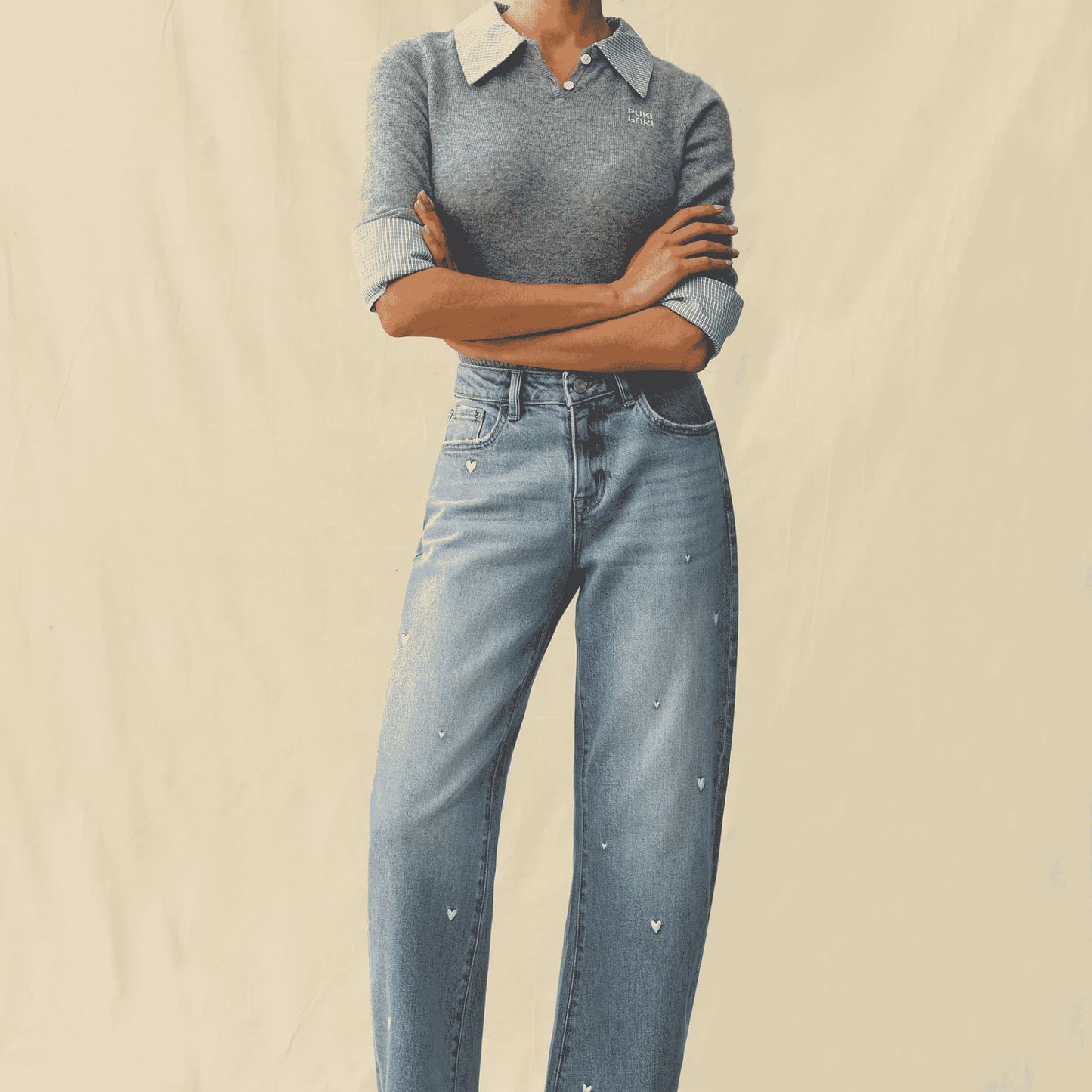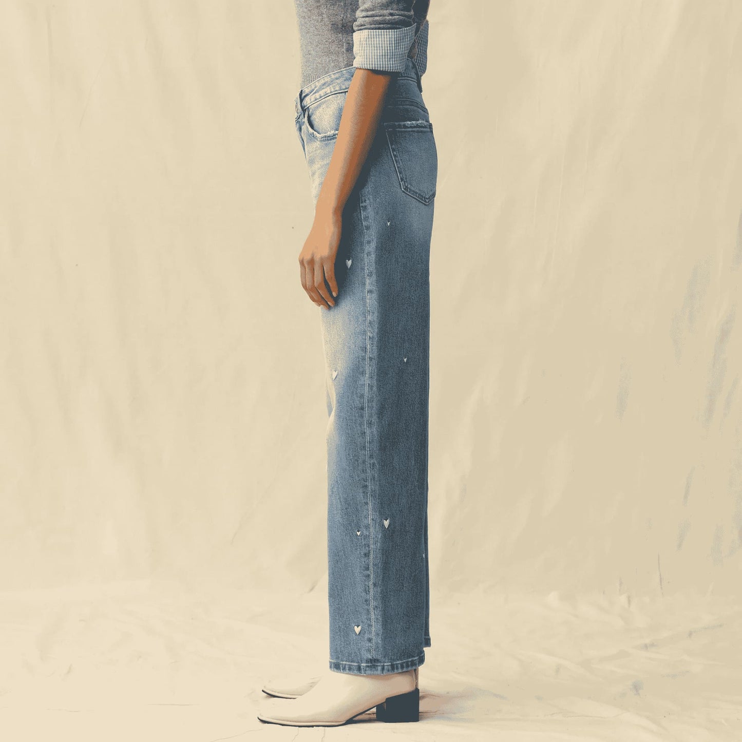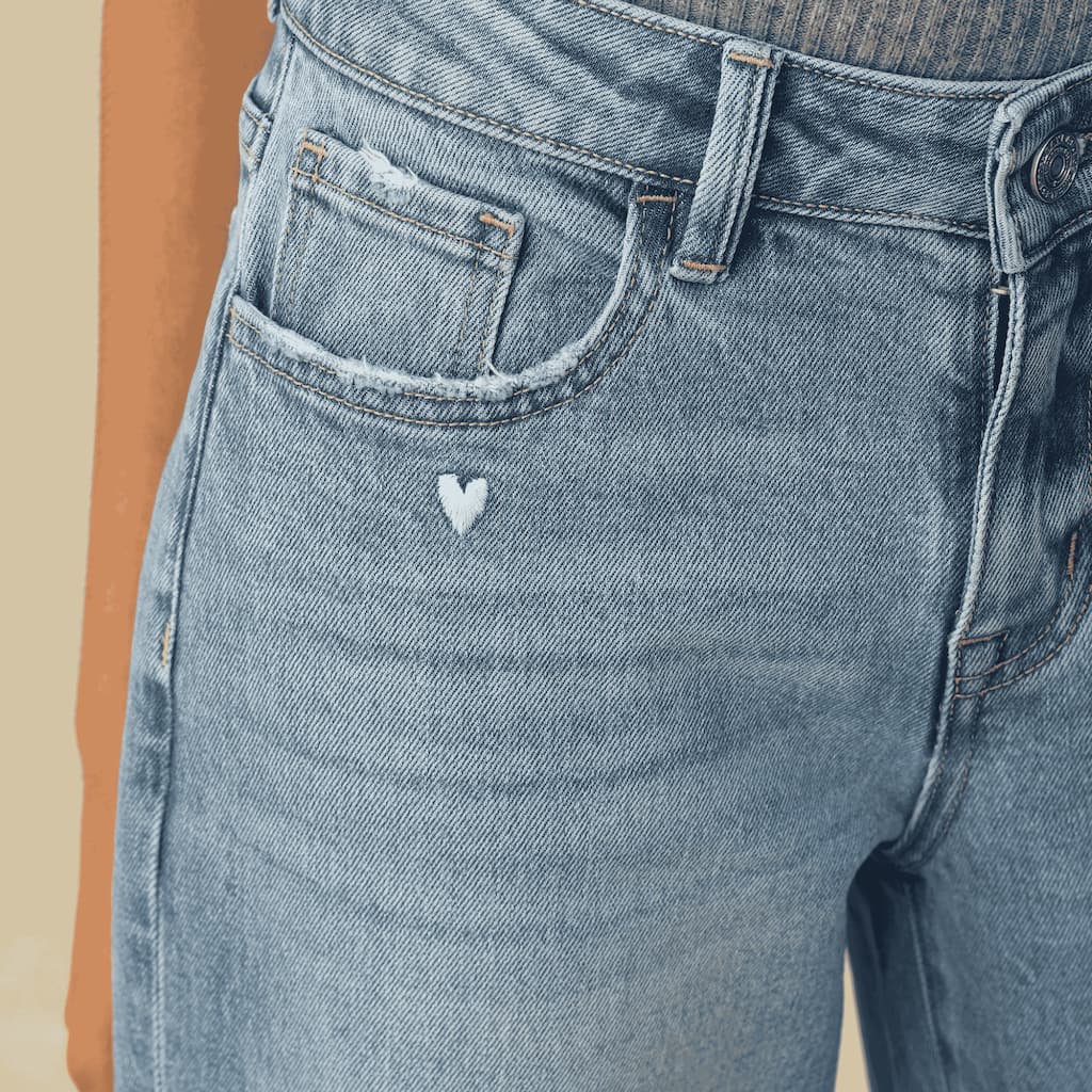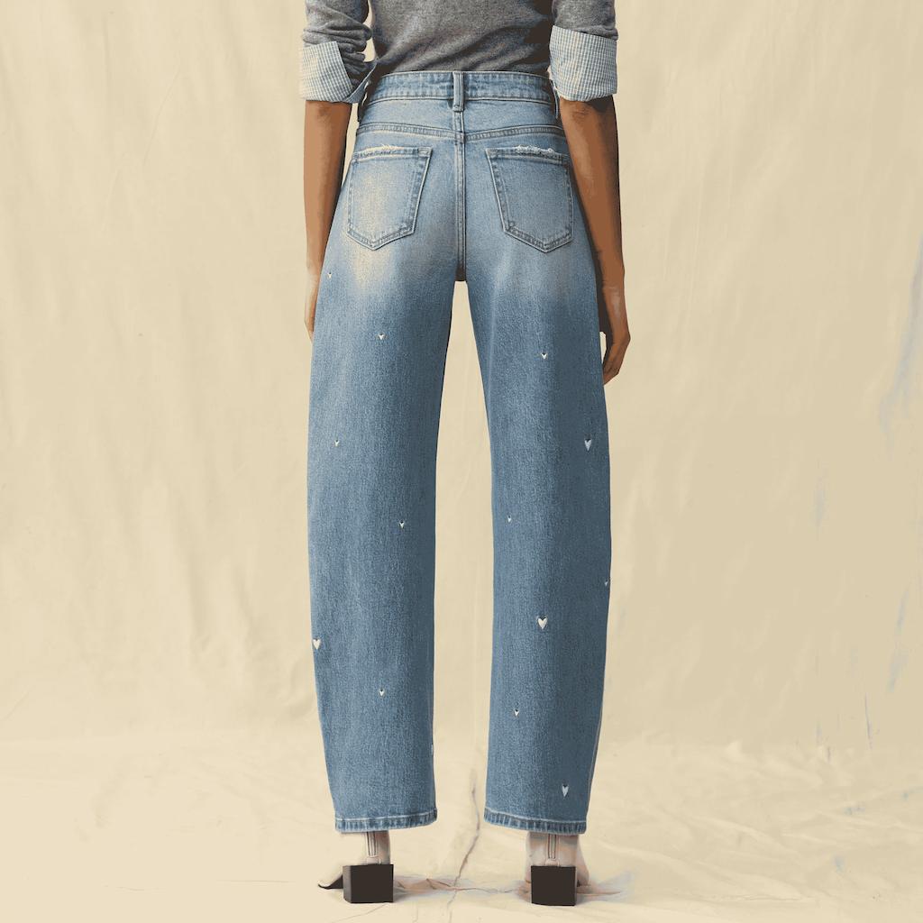 Flora Mid-Rise Barrel Jeans – Heart Embroidery