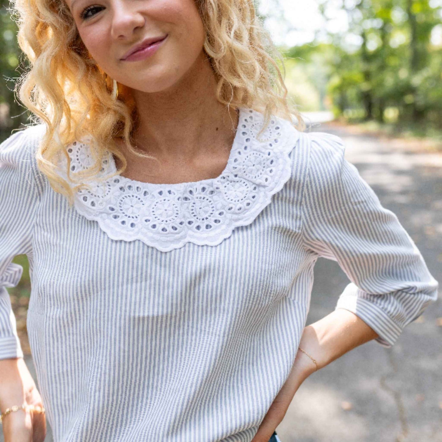 Louise Top – Blue & White Striped | Modafleur