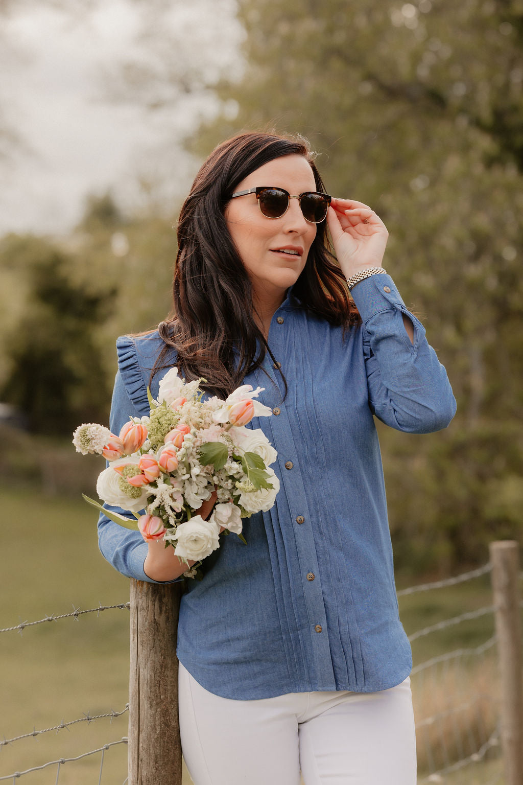 With delicate pintucks, a tailored yet relaxed fit, and a subtle ruffled neckline, this blouse adds an air of refinement while ensuring ease of movement. Whether you’re spending the day at a sporting event or heading into town, the Charlotte Blouse offers the perfect balance of structure and effortless charm.