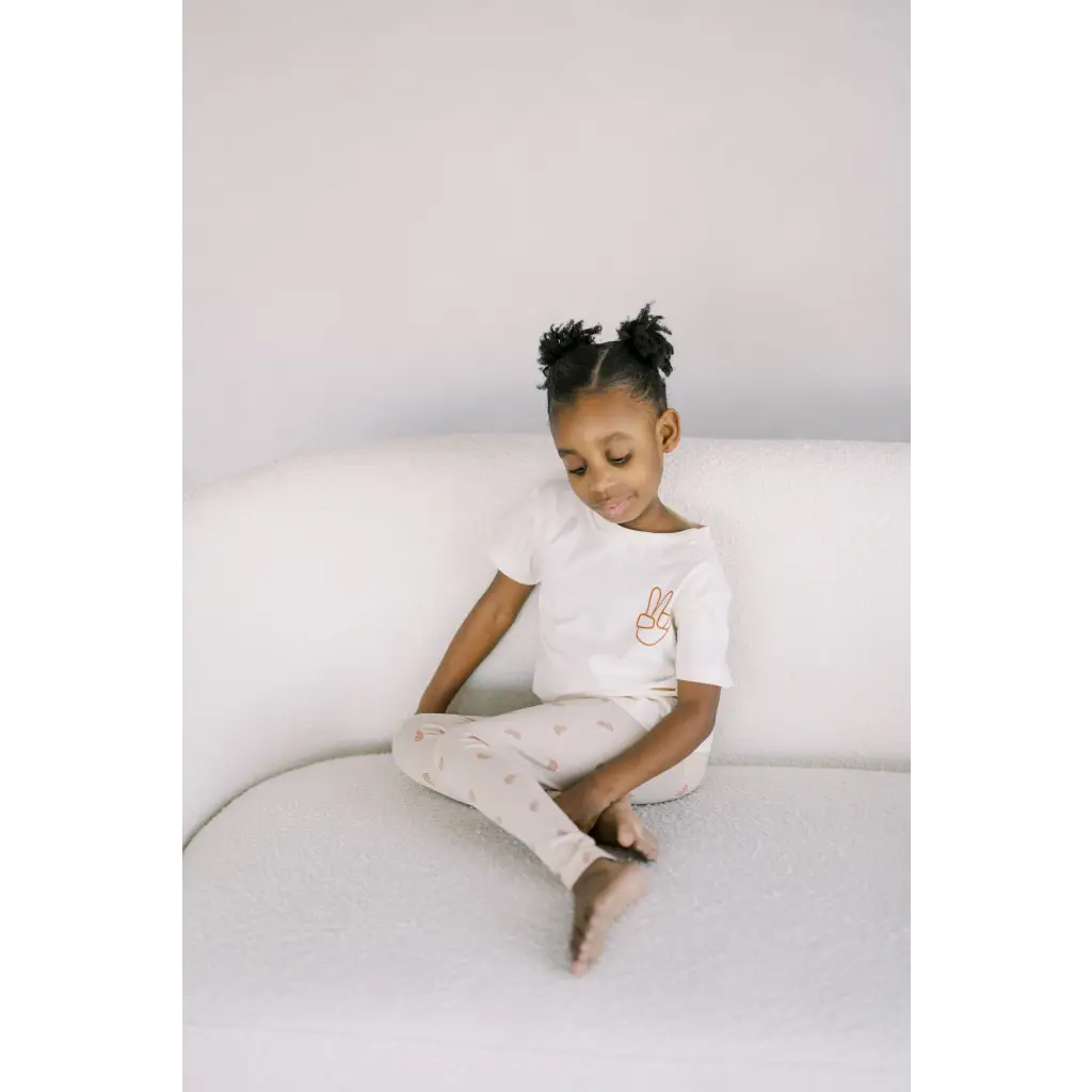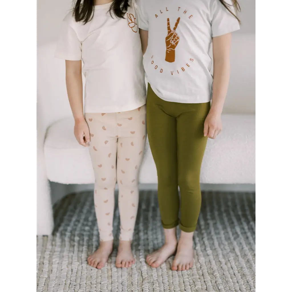 Spreading the good vibes through the softest, flexible lightweight leggings. Perfect for all the seasons. Designed by the moms at Polished Prints, ethically made in Bangladesh.