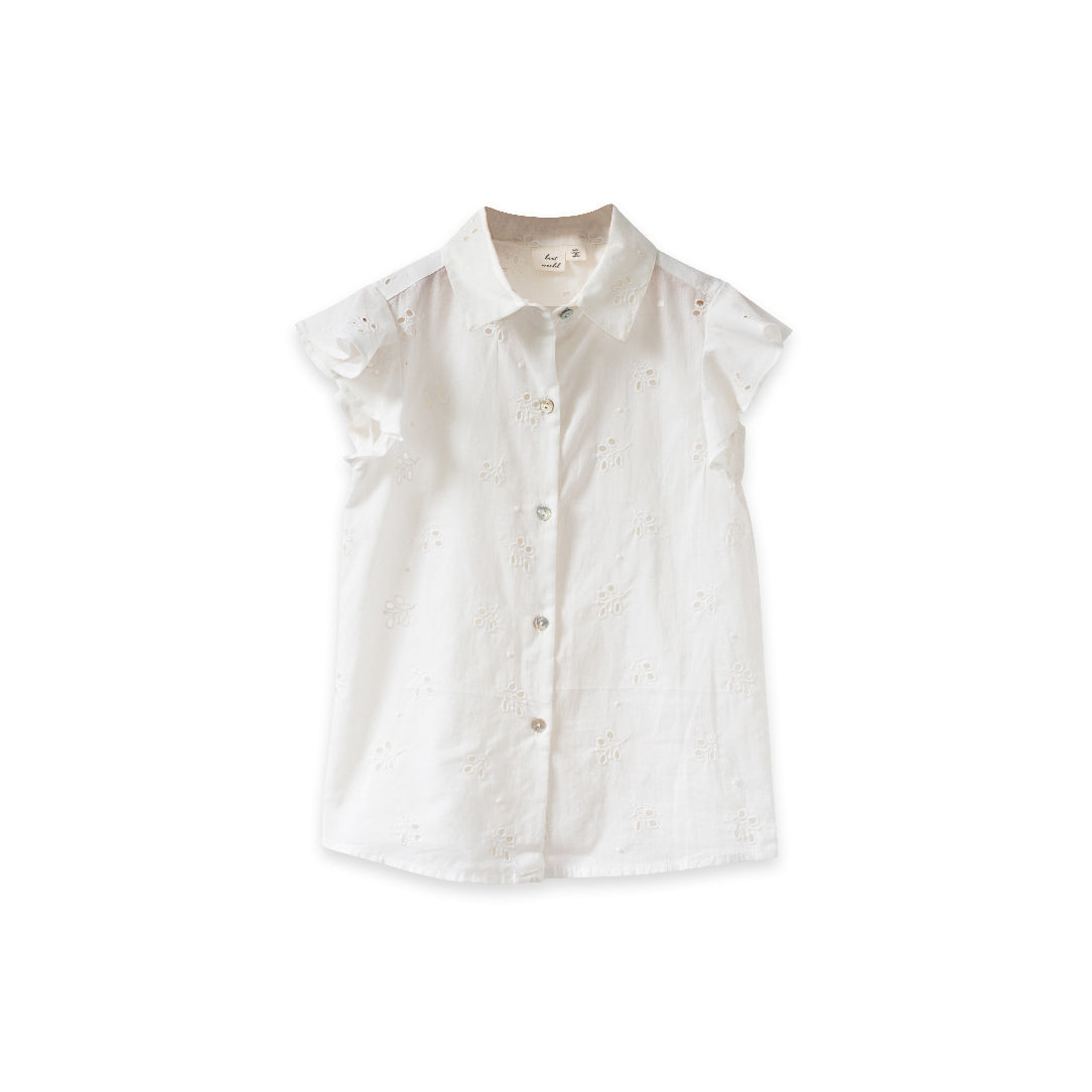 The new Lola top is simple, stunning, versatile and we hope will soon be a favorite for your adventure loving little ones. Featuring wide flutter sleeves that give sweet breezy feel, relaxed body and a collar neckline - it's ready to go with a skirt or leggings of their choice. We love the beauty of the eyelet embroidery that makes everything look just a little bit more stunning! A perfect go-to all season!